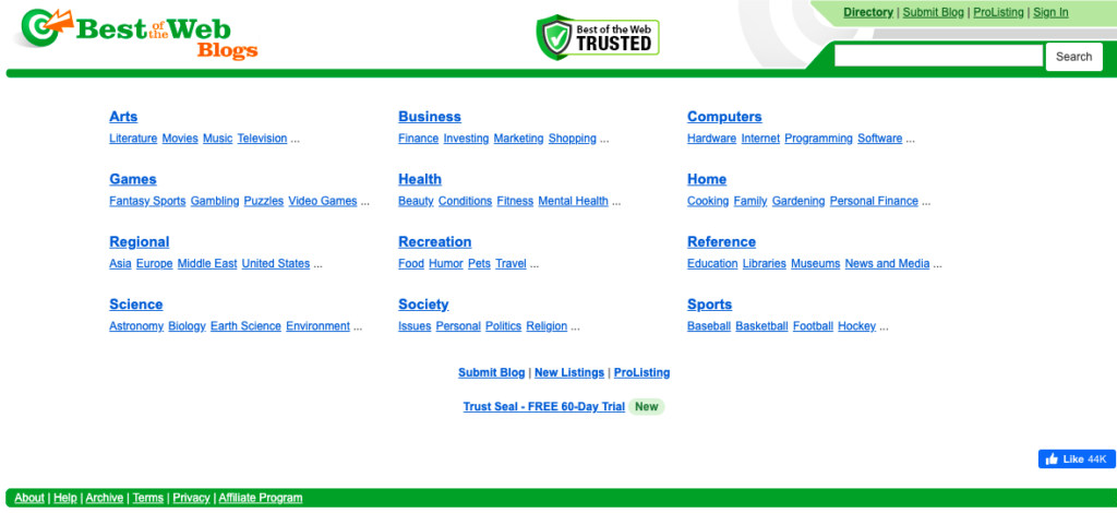Often times, basic search engines won’t cut it and you’ll need more specialized search tools such as Best of the Web Blogs. Best of the Web Blogs is a no-frills blog search engine that provides an exhaustive list of specialized sites in various industries that you may not easily find on Google.